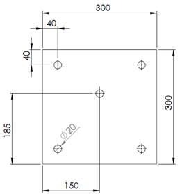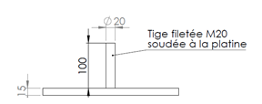 Pour assurer une bonne stabilité de la machine dans le temps, il est impératif de positionner la machine sur x4 platines métalliques, et il est obligatoire de sceller la machine au sol. Ci-dessous préconisation pour les dimensions des platines