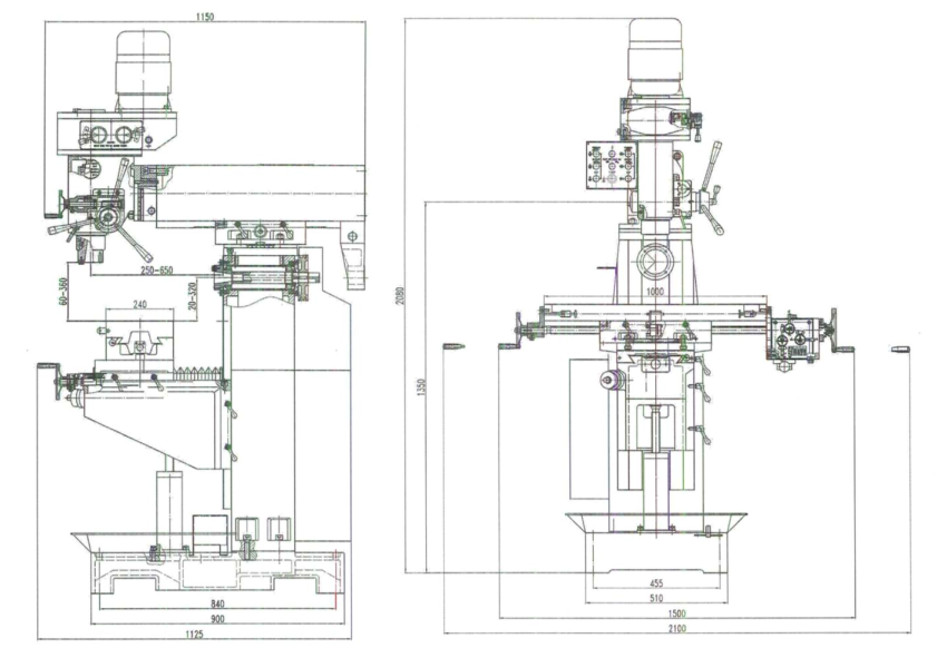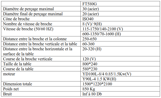 Puissance : Broche vertical : 1.5 kW / Broche horizontale : 1.5 kW / Pompe d'arrosage : 0.75 kW