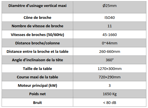 Pneumatique : cette machine ne requiert pas d’alimentation en air (sauf si un système de micro-lubrification est utilisé).